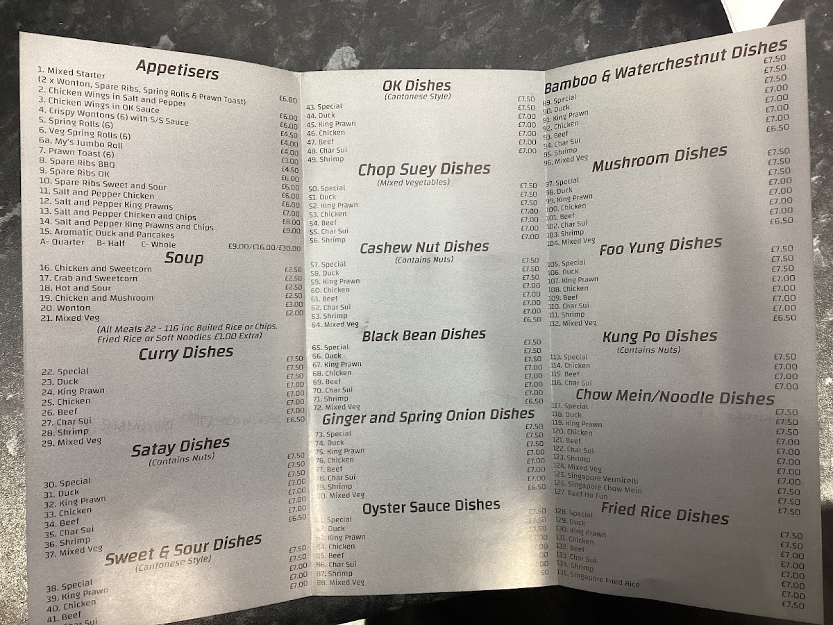 My’s Oriental Cuisine stands out with a menu that celebrates traditional Chinese flavors through a variety of enticing options. Begin your meal with their popular Mixed Starter (£7.00), a delightful sampler that perfectly showcases the vibrant array of flavors, or savor the crunch of Crispy Wontons (£5.50) with a tangy sweet and sour sauce. For those looking for something heartier, the Salt and Pepper Chicken (£7.00) and Salt and Pepper King Prawns (£8.00) are must-tries, with their mouthwatering combination of spices that will tantalize your taste buds. The sumptuousness doesn’t stop there; the restaurant also offers delectable Beef Chow Mein and Chicken Chop Suey that promise vibrant flavors without the heavy takeout feeling, leaving you satisfied yet light.